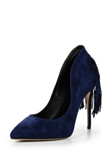 - pointy shoes for a dress of natural velor with an original fringe in the heel and a thin heel (they are a wonderful and sexy evening and holiday option);