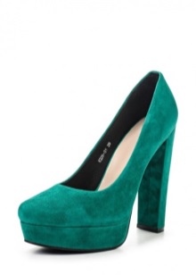 - green, black, blue and red shoes made of natural suede with high heels and a fairly high platform;