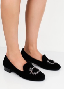 Velvet shoes from different brands look rather harmoniously in tandem with jeans and skirts of various colors and blouses or shirts made of light sliding fabrics.
