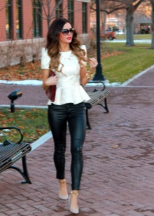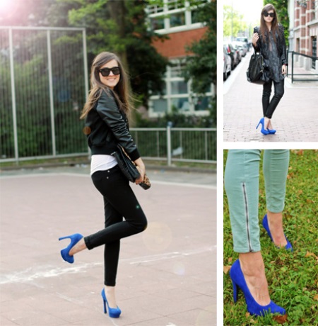 Shoes and leather leggings or leggings in combination with charming blouses and jackets look quite attractive and stylish. Festive and evening dresses, decorated with velvet shoes with thin heels and stiletto heels, make an indelible impression on others and create a unique feminine style.