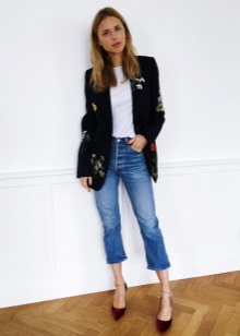 Extravagant and business trouser suits with stylish jackets and trousers of any cut look with velvet shoes not only spectacularly, but also sexy.