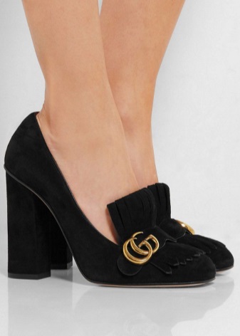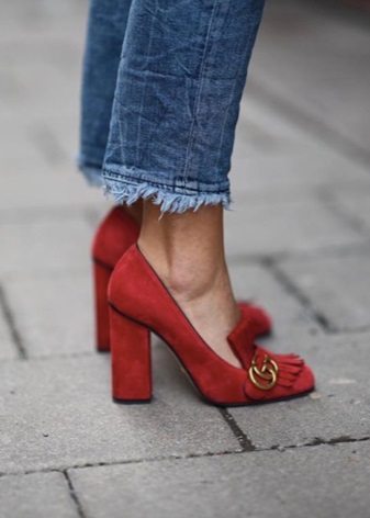The most vivid and non-trivial models of women's shoes are produced by the world famous brand Gucci. Velvet shoes from this world famous brand are complemented by a scattering of Swarovski crystals, as well as unusual metallic inserts in the form of spikes, rivets, large and small stones of a contrasting color.