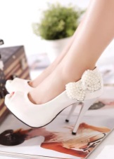 - decorated. White shoes are decorated with different rhinestones, embroidery, lace, at the peak of popularity - spikes, decorative carved patterns around the edge, bows and rivets, brooches. The main thing is that all this be appropriate and fit alongside.