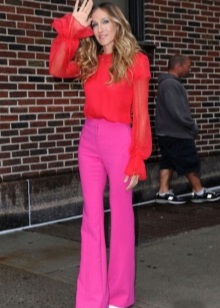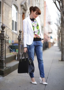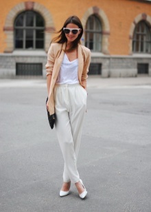 - Bright. White shoes are appropriate and with bright colors of the rainbow. Orange, lettuce, shades of fuchsia are transformed and balanced due to the white bottom. The brightness of the color can be emphasized by throwing a white jacket or vest on top.