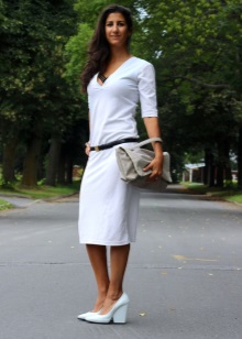 White shoes are the best friends of summer looks.. They will give you lightness, and highlight, emphasizing your slender legs. Solid dresses - blue, pink, mint and white shoes will make up a wonderful duet.