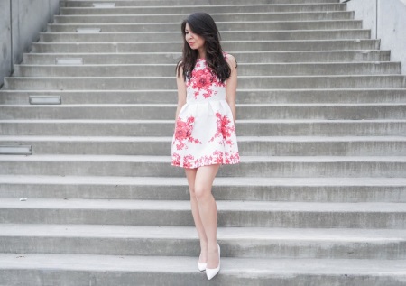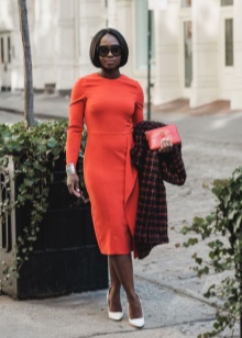 - Red. White and red colors, like yin-yang, are harmonious and beautiful in a duet. Passionate image with a bright red dress, playful with red peas, stylish with red and white stripes. Black is perfect for them. You can complement the image of passion with a bright clutch.