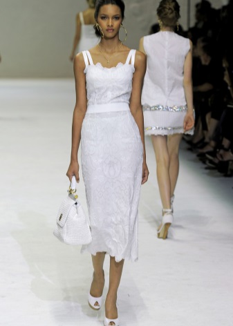 White shoes blend beautifully with straight dresses. Wedge models can be safely combined with A-shaped dresses. It is worth giving preference to beige outfits.