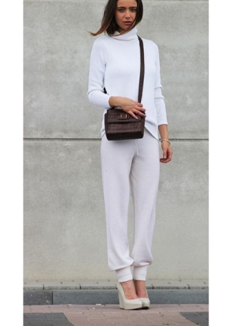 Many fashionistas like to wear jeans under white shoes, preferring light tones or bright color schemes.
