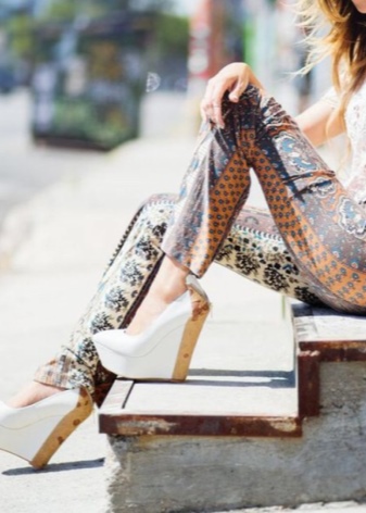 Boho and ethno lovers will be able to diversify their unusual bow with white wedge shoes.You can safely use them for the embodiment of fashionable bows in tandem with skirts or dresses that freely sit on the figure.
