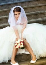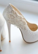 Of particular interest is the design of wedding shoes. Here is a variety of elements and inserts. Flowers, stones, lace, beads and beads. The choice remains only for the bride to get a combination of shoes, gloves or other accessories.