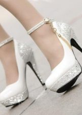 As mentioned earlier, the imagination of the decor of white shoes is not limited to anything. If this is a festive option, then rhinestones will look appropriate and beautiful. Many stores feature models that are fully inlaid with rhinestones. These chic shoes will be appropriate on a holiday where their mistress will attract a lot of attention. But there are more modest models on which rhinestones are only as elements and partially cover the surface of the shoe.