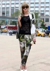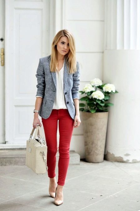 The first option with what to wear white shoes is, of course, black and white, graphic outfits. It is these contrasting colors that are best combined with each other. But red can also be added to this list. It is better if it will be shown in detail, otherwise you can overload the image.