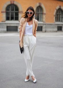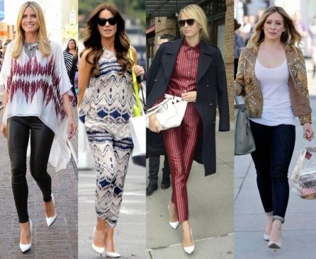 If you do not belong to girls with slender legs, then stylists recommend choosing white high-heeled shoes and complementing them with wide trousers on the cuff or a skirt on the floor.