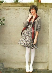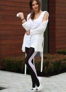 This combination becomes relevant and due to the fact that its retro style is gaining popularity, which allows you to combine white shoes with tights of brown, gray or black.