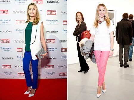 Fashionable, which season, mint, orange and pink color, complement well open white shoes or sandals. Together, they are able to effectively emphasize the tan and give the skin a radiance.