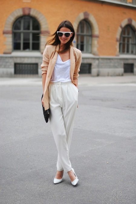 The second important factor when choosing white shoes is its shade. White, like others, also has several shades and sometimes it’s very difficult to combine the whole image into one gamut. It is better if the shoes are a few shades darker from the whole “white” image. Ideally, you can take the shade of ivory as a basis, rather than pure white.