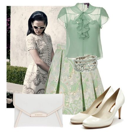 It is important not to overload the image with details. White shoes themselves are a separate part and focus all attention on themselves. If you decide to choose a pleated skirt for white shoes, then the top should be chosen more restrained.
