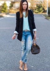 Casual skinny jeans will look great in tandem with these shoes. To give the image more femininity, you need to tuck your legs, thereby exposing your ankle.