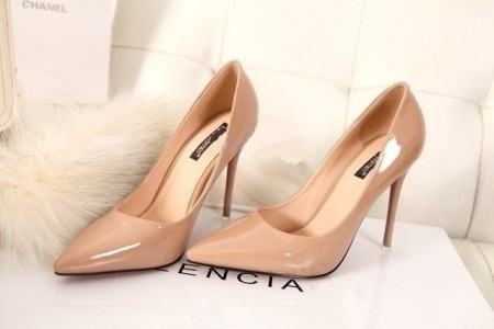 The fair sex, who want to have a universal pair of shoes in their wardrobe, should take a closer look at the beige patent leather pumps.