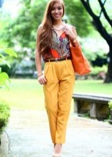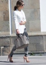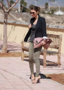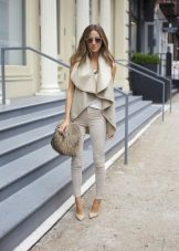 Beige shoes go well with cropped trousers. Such trousers have the ability to visually shorten the legs, but due to the combination with beige shoes, the proportions are preserved, and a beautiful image is obtained.
