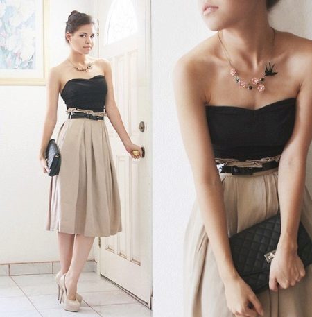 A chiffon blouse and a black pencil skirt are complemented by high-heeled shoes. If you put on a jacket - you can go to the office, and if you add jewelry, you get an elegant option.