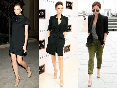 It is not recommended to combine beige shoes with plain suits or dresses in beige, which completely match the tone of the shoes.