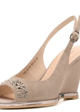 This year, on a wedge heel, one can meet the most diverse decor - rhinestones, metal fittings and even modeling. The shoes themselves are decorated with buckles, bows and textile flowers.