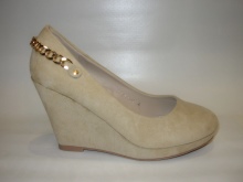 Beige wedge shoes are a good get-together. Combine them with a little black dress and matching tights, complementing the look with a classic beige trench coat. The finishing touch will be a massive necklace on the neck.