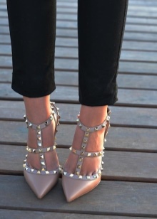 Models with a strap are practical and fashionable, now they are at the peak of popularity. They sit securely on the foot, make the image feminine and romantic, emphasize the grace of your ankles. Unlike models of other colors, they do not shorten the leg, as the strap blends with the color of your skin. It is best to wear them with clothes, behind which the strap will not hide, then the image will look very impressive.