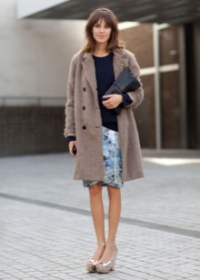 To beige shoes with wedges, skirts of any style are suitable. It is better to wear a pencil skirt in the office in combination with a closed model of shoes or with cutouts on the fingers. This will not violate any, even strict dress code, the image will look restrained and appropriate in any working situation.