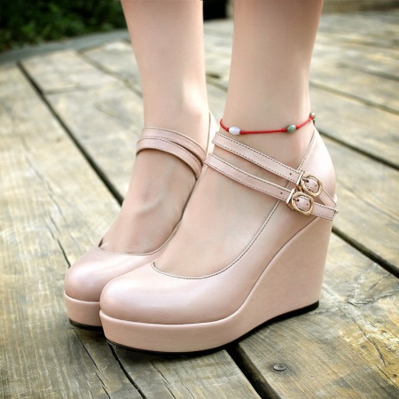 Beige shoes visually stretch the figure making you slimmer and legs length. The higher the platform, the more pronounced the effect will be.