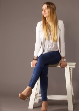 - You can not do without everyone's favorite jeans! Skinny jeans and beige shoes combine to create a great casual look.