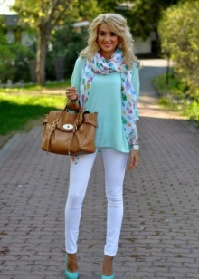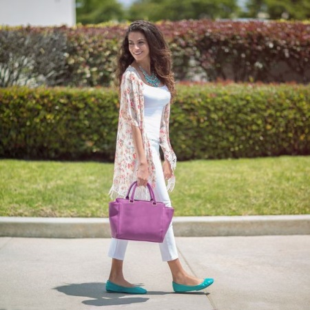 Combine turquoise shoes, accessories and white clothes if you want to maximize the brightness of your look! Things can be either pure white or have color prints. White pair and turquoise give the image lightness, peace and freshness.