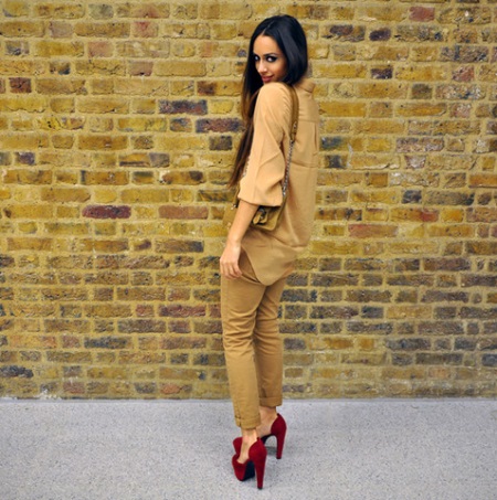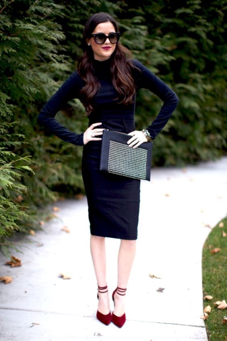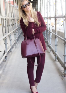 Monochrome combination. The color of the shoes may match the color of the clothes. The burgundy color is well suited for an evening out; it is often chosen for dresses made of luxurious fabrics. It is believed that wine shades of red color look stylish in the total look, that is, in a set of things of the same color scheme.