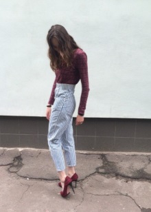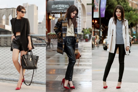 Burgundy shoes perfectly complement the evening outfit. They are perfect for a little black (or blue) dress. A good option if the color of burgundy will be declared in the accessories: handbag, bracelet, beads, etc. will make the image complete.