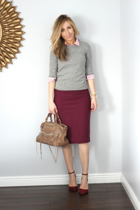 Burgundy and other shades of red. It is permissible to choose burgundy shoes if the outfit contains various shades of red or pink. Light pink may be the main color in the outfit, as for other shades of red, it is better if in combination with burgundy in this case they will play only a secondary role.