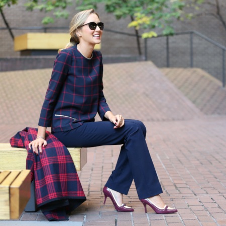 Burgundy and blue. The combination of burgundy shoes and blue shades always looks good. You can always add clothes or accessories to it in white or gray. This combination will look very impressive.