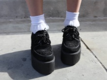 Unlike other types of platform shoes, this product cannot be called everyday. On the contrary, it was created specifically to impress. Black color in this case looks the most spectacular and appropriate. Designers quite successfully demonstrate how solid shoes are completely made of leather, devoid of any jewelry, as well as products quite interesting in terms of decoration, complemented by lace, rhinestones or spikes. The latter method is especially relevant among representatives of youth subcultures.
