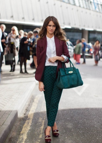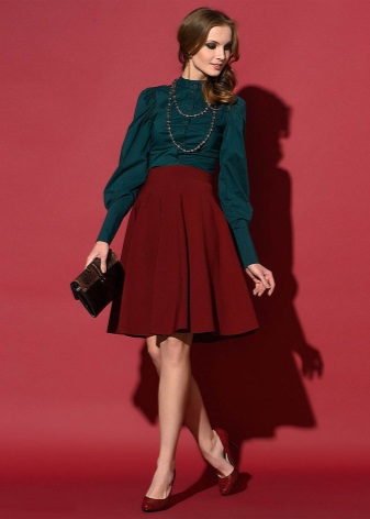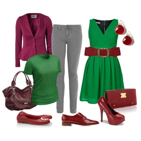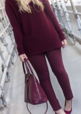 Oddly enough, the wine color of Marsala goes well with green. Dresses, trousers and blouses, which have a rich emerald hue, are in perfect harmony with suede slippers in Marsala color with durable high heels.