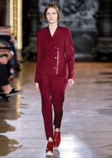 - burgundy pants made of various materials;