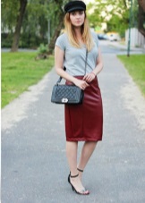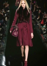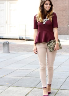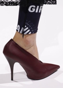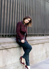 Shoes of beautiful wine color create a magical and romantic look in combination with pink, lilac, light purple and peach clothes. The combination of a short pink dress made of flowing light fabric and pointed-toed marsala pumps looks very fresh and youthful.