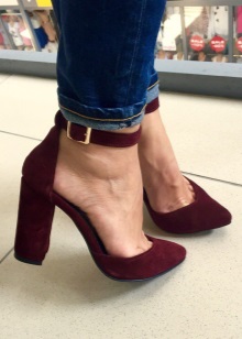 Dress up your business style and style with Marsala suede high-heeled shoes combined with light clothing. Beige trousers, shirts and jackets of various colors in combination with wine-colored shoes will create restrained and at the same time feminine images.