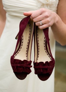 Marsala-colored shoes look very sophisticated and noble. In this color, classic boats, stilettos or square heels can be made. A toe in shoes of such a beautiful color can be either open or closed and have a rounded or pointed shape.