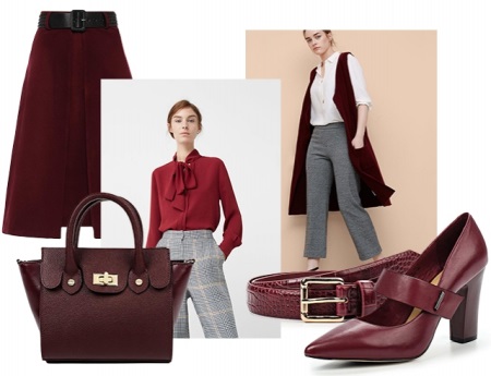 Gray, black or cream pantsuit in combination with Marsala shoes will create a stylish and elegant business look.