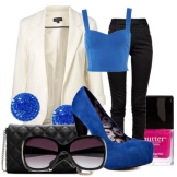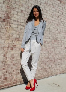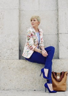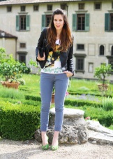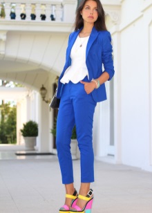 A youthful combination of blue shoes with tight pants, a light jacket (T-shirt, T-shirt) and a white jacket or trench coat looks very stylish and bright. You should not wear classic jeans and shirts of the same color with such delicate shoes, as such an outfit will look very boring.