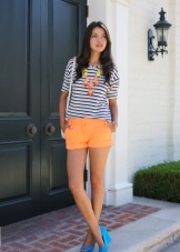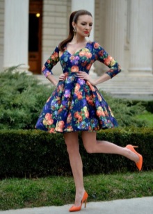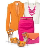 Juicy orange in harmony with caramel, white, green, blue and cream color. It is easy to create a bright and attractive image with the help of classic summer dresses or blouses with various skirts, complemented by colored shoes. Poisonous fuchsia, diluted with a playful orange color in the dress, will emphasize the bright personality of a stylish fashionista.