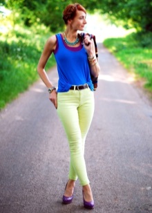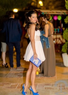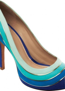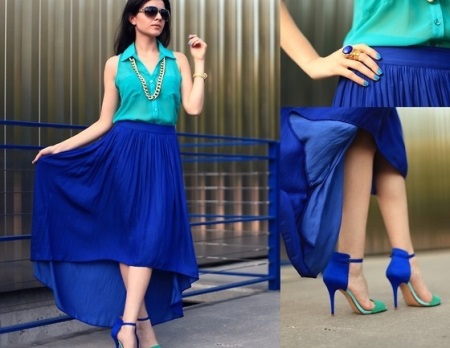 A bright and juicy image can be made up of blue shoes and clothes of green, yellow, pink or white. Beautiful models of heavenly colors perfectly complement the light turquoise, lilac and blue dresses, decorated with thin straps at the waist.