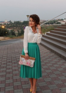 Bright and rich models of shoes will fit perfectly into the business image, unless you work where the dress code is strictly regulated. Colored shoes can be worn with trouser suits, formal skirts, straight dresses and sheath dresses. An outfit with a contrasting white top and dark bottom, complemented by bright shoes, looks very fresh and stylish.