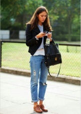 - Suede patterns combine wonderfully with jeans. Since jeans do not like rigor, textile models and two-tone ones can be worn under them.