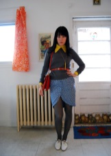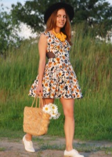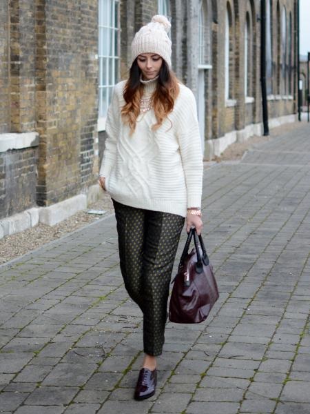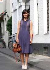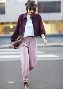 - An image with low shoes of brown, burgundy or another color is well complemented by a voluminous bag with a shade similar to shoes.